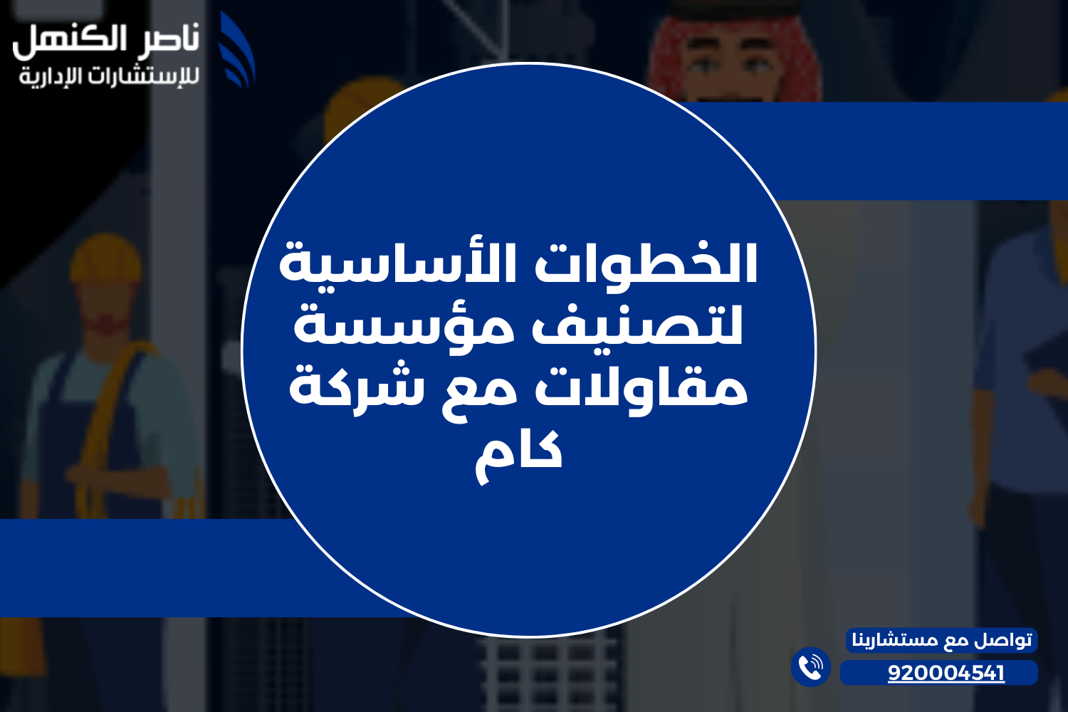شركة كام تعتبر واحدة من أبرز المكاتب الاستشارية المتخصصة في مجال تصنيف المقاولين في المملكة العربية السعودية فتمتلك الشركة خبرة تزيد عن خمسة عشر عامًا في تقديم الخدمات الاستشارية للمقاولين مما يجعلها وجهة موثوقة للراغبين في الحصول على شهادات التصنيف اللازمة لفتح أبواب الفرص التجارية ويتمحور عمل شركة كام حول تقديم الدعم والتوجيه للمقاولين والشركات في مختلف مراحل تصنيفهم بدءًا من التحضير للاستشارات وصولاً إلى إعداد المستندات المطلوبة واستكمال الإجراءات.